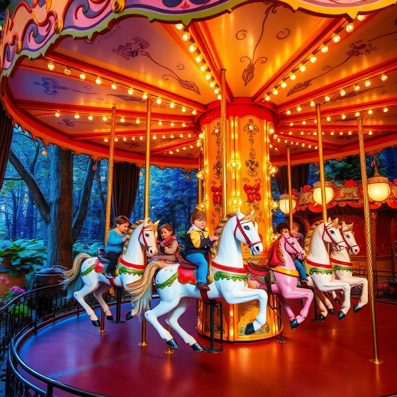 Klasyczna magia wesołego miasteczka w baśniowym wydaniu! To kraina pełna wirujących, kolorowych karuzel i dziecięcej radości. Najmłodsi goście mogą tu przeżyć niezapomniane przejażdżki w całkowicie bezpiecznej, radosnej atmosferze, która przywoła wspomnienia z najlepszych lat dzieciństwa.